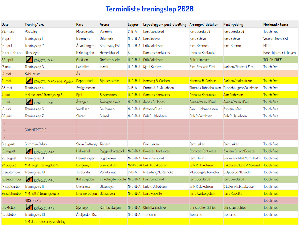 Terminliste for treningsløp i 2026 er oppdatert! Alt info finnes her.
